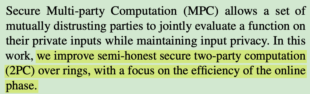 reduces the number of online rounds from 2 to 1