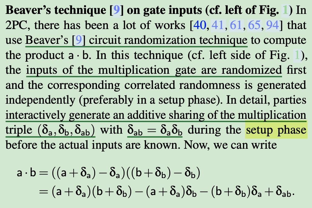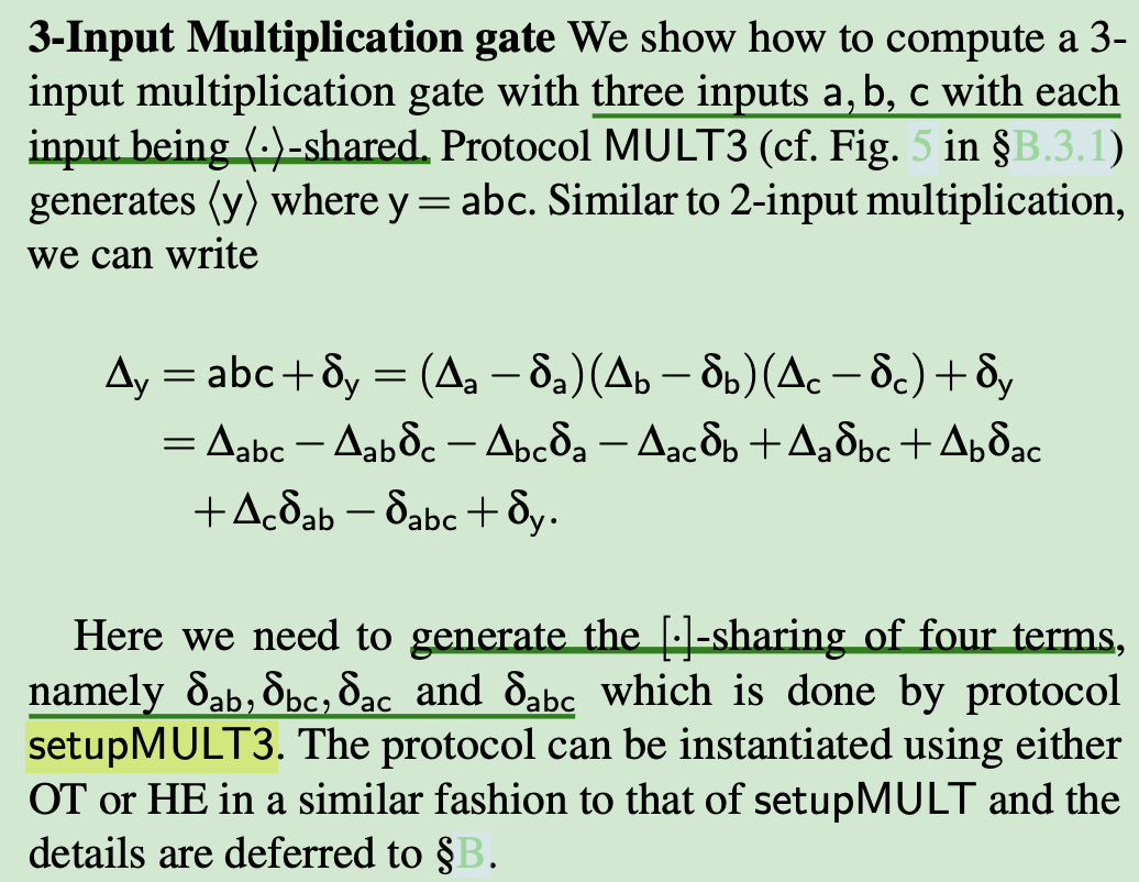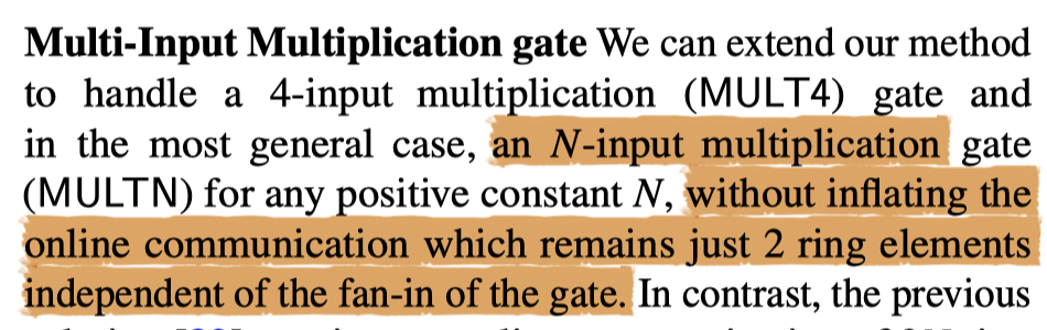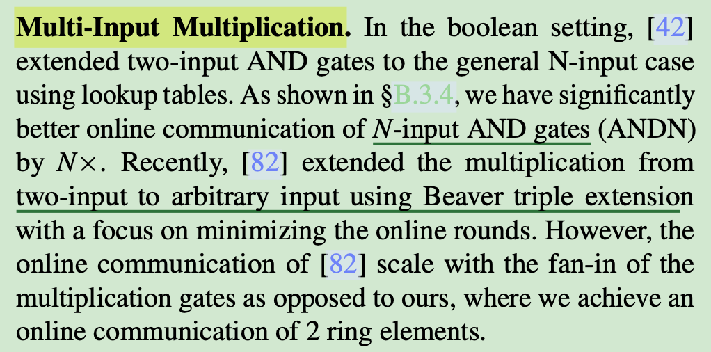 [82] extended the multiplication from 2-input to N-input using Beaver triple extension