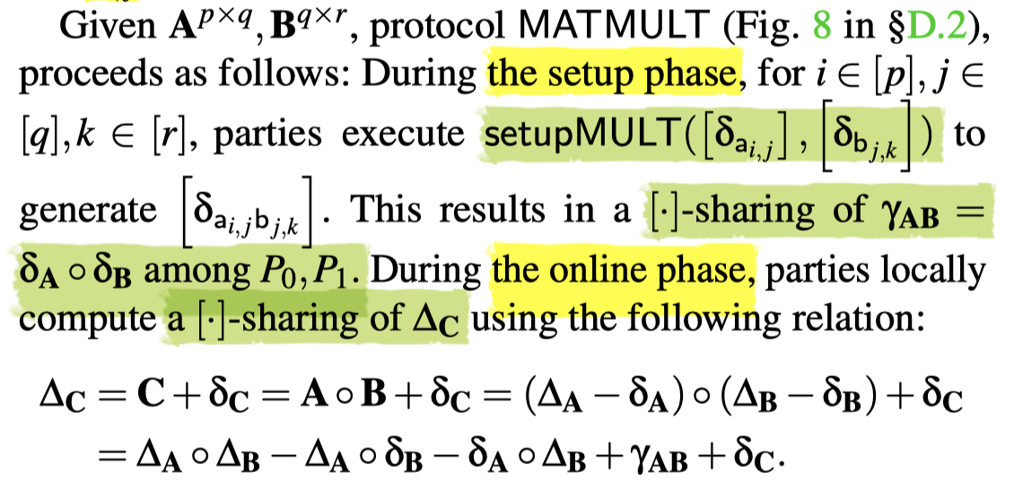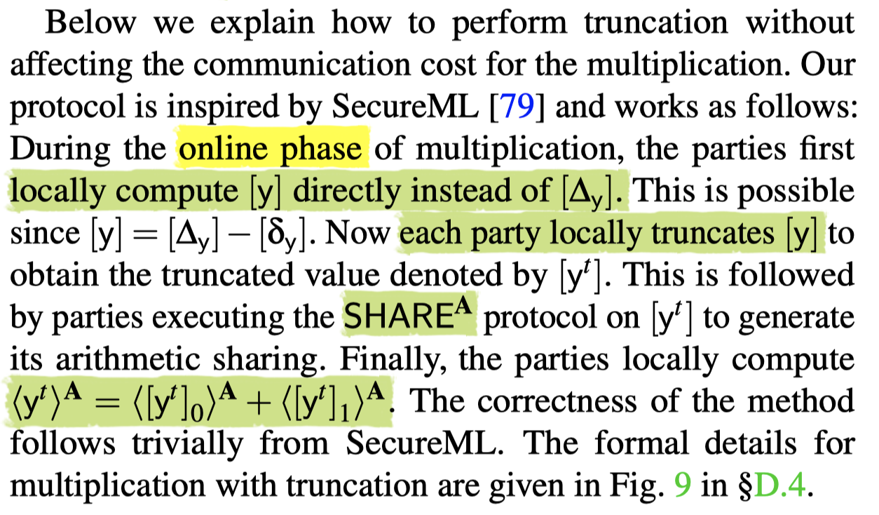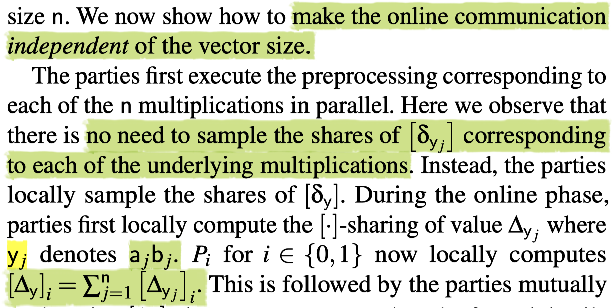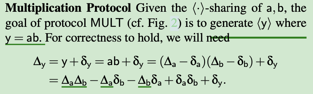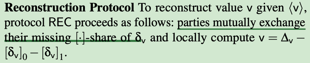 So parties locally compute an additive sharing of Δy and exchange the shares to reconstruct Δy