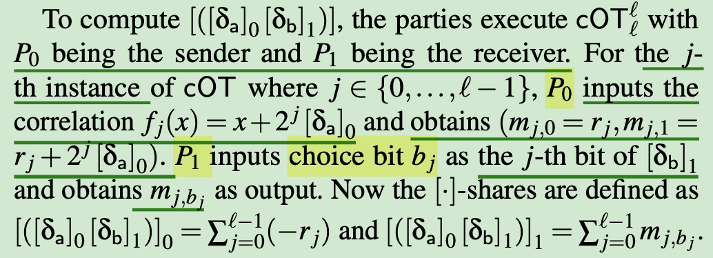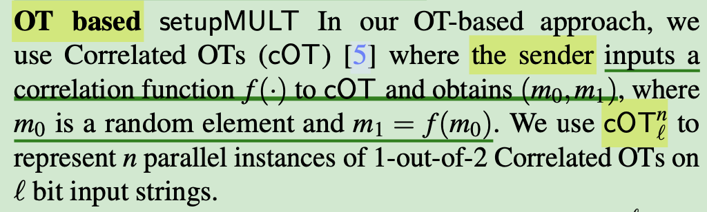 use correlated OTs(cOT)
