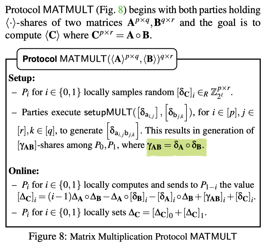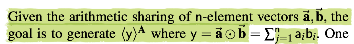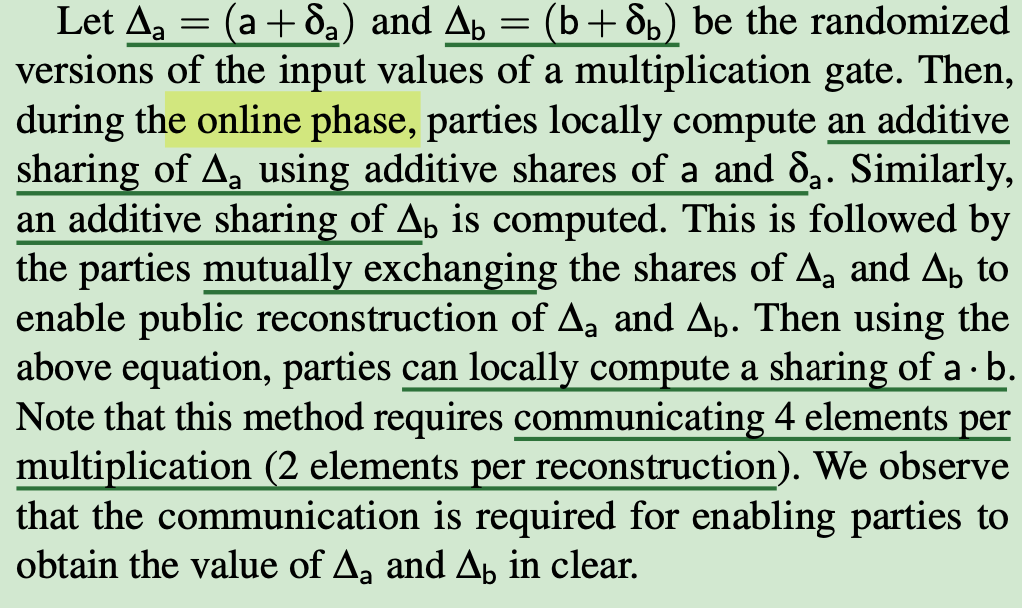 interactively generate the multiplication triple: (δa,δb,δab) with δab=δaδb