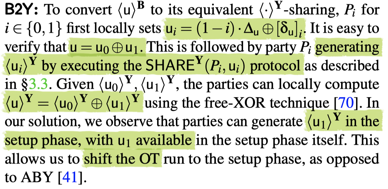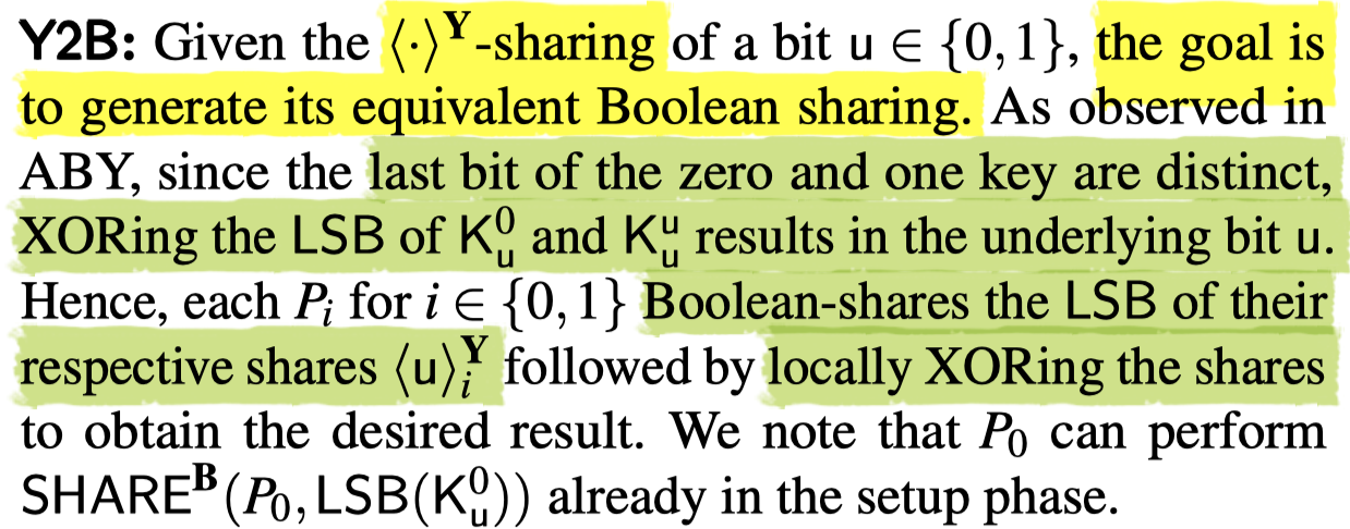 optimization: P0可以在setup phase Boolean-shares LSB(Ku0),因为这是一个随机选的label,而另一个指depends on the value.