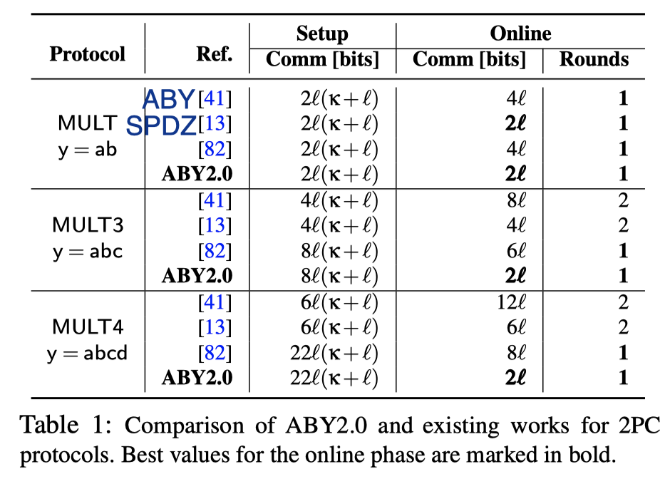Comparison of ABY2.0 and other 2PC protocols